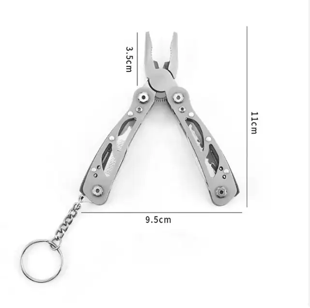 INSTRUMENT MULTIFUNCTIONAL 14 in 1: Unelte multifunctionale cu 14 functii, inclusiv capete de cleste (cleste cu beza lunga, cleste cu varf rotund, cleste taiat), cutit ascutit, surubelnita philips, surubelnita cu crestatura(E), cutit zimtat, dispozitiv de indepartare a carligelor, pila cu doua fete, surubelnita cu crestat (L), razuitoare mica, surubelnita cu crestat (M), deschizator de conserve si deschizator de sticle.