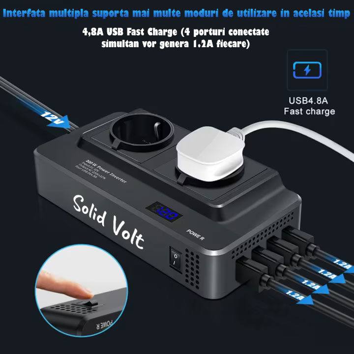 Invertor 1000/2000W 12V/24V-220V Sinus Modificat Solid Volt
