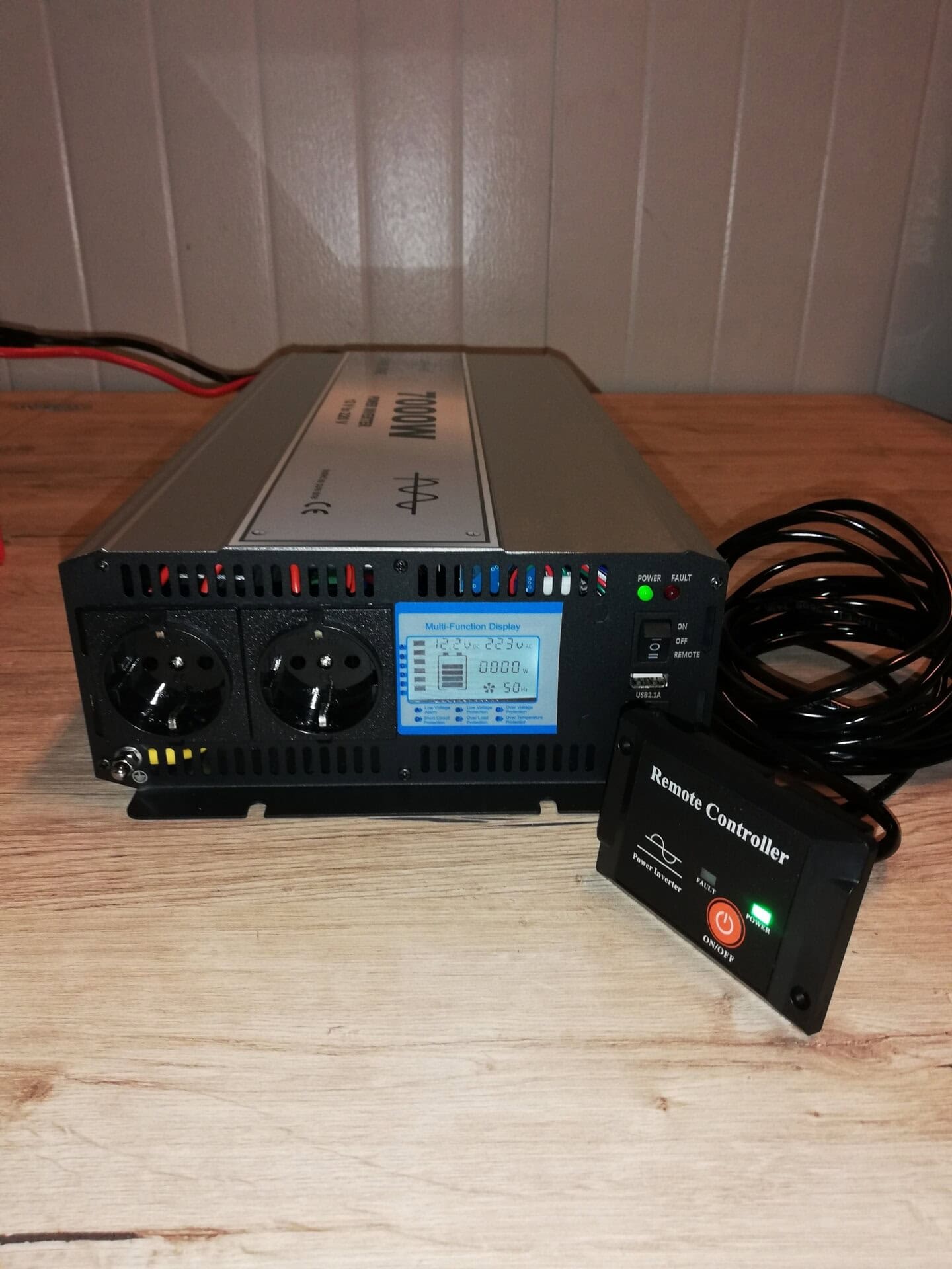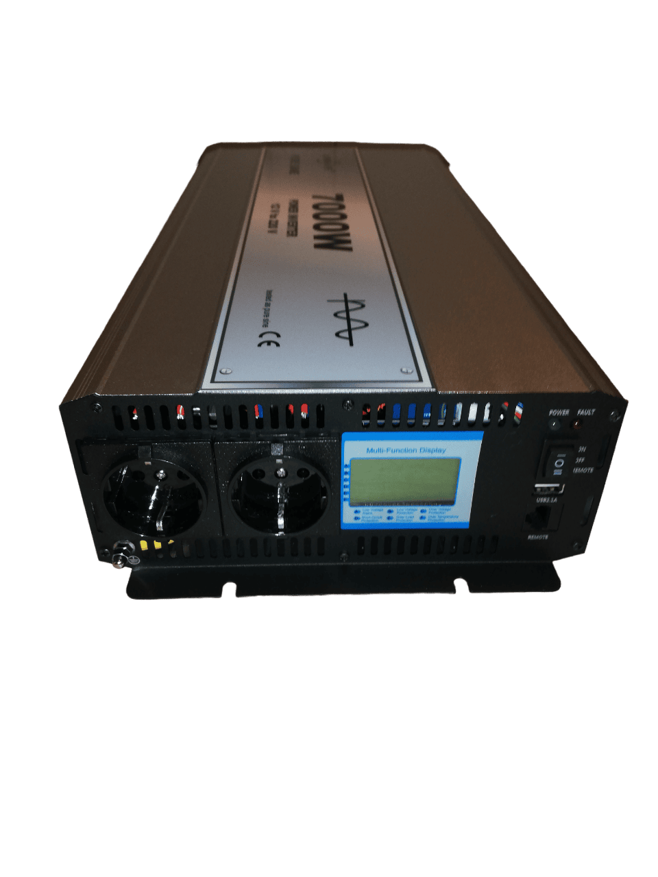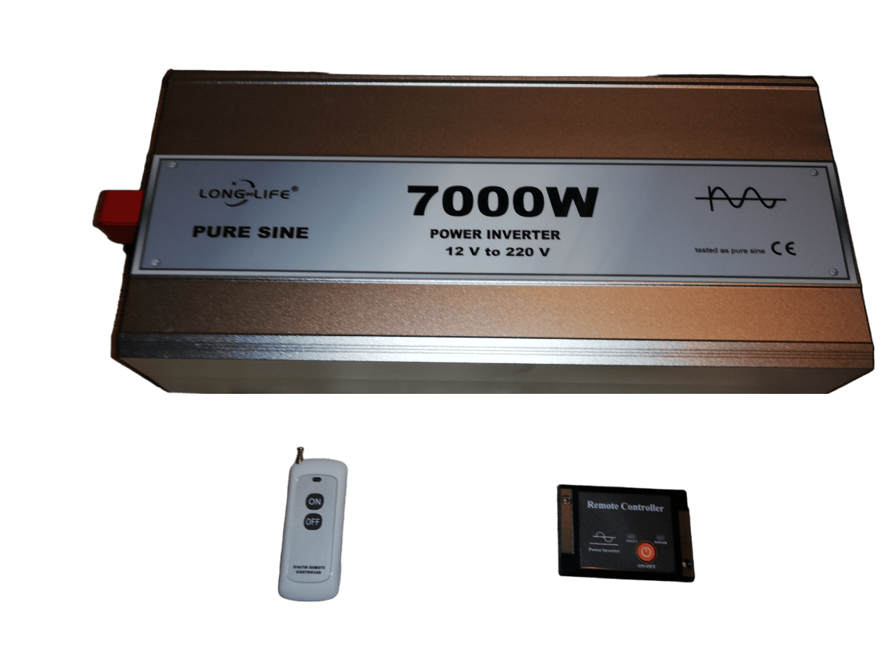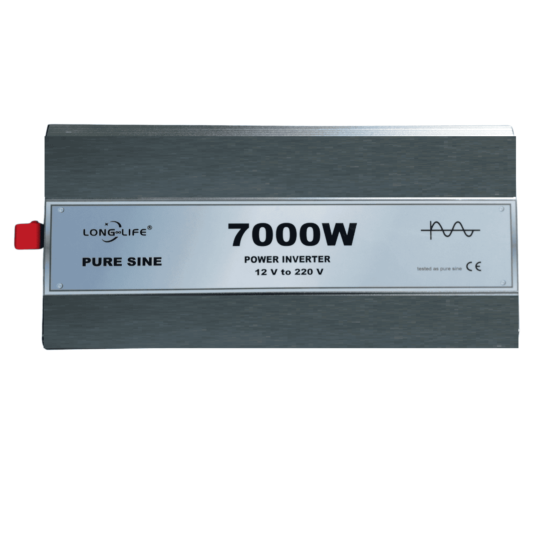 Invertor 12V-220V Pure Sine Long Life de 7000W, cu carcasa din aliaj de aluminiu-magneziu, pentru auto si panouri solare, cu greutate usoara si conductibilitate termica buna.