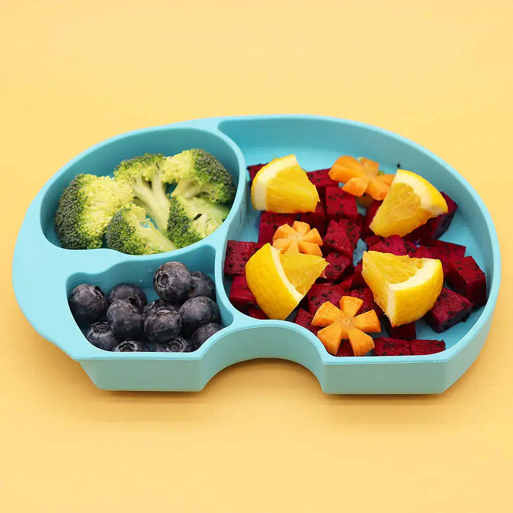 • Farfurie compartimentata din silicon cu ventuza pentru fixare