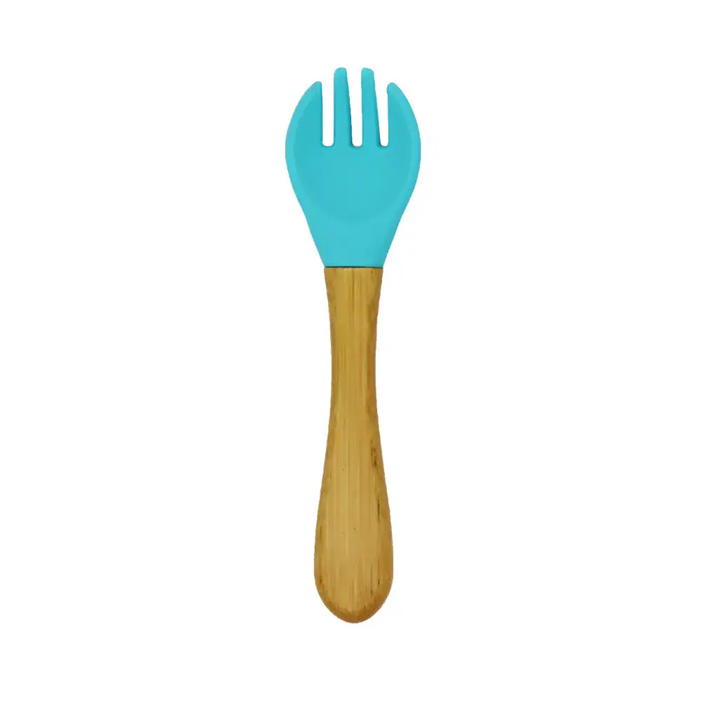 • Lingurita si furculita cu varf moale din silicon si maner din bambus